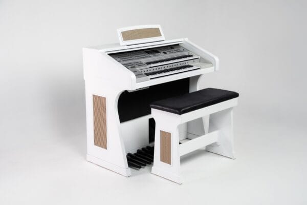 Expressão Realista: A experiência vai além das teclas. Inclui pedal de expressão, alavanca de joelho para controle de efeitos em tempo real e teclados com sensibilidade “after touch”, respondendo à intensidade do seu toque.