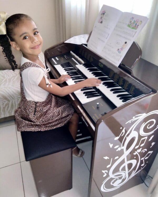 – 100 tipos de sons nos teclados; – 32 ritmos; – Dual voice; – 49 teclas nos teclados; – 3 bancos de memória; – Entrada USB + Cartão SD + Rádio FM + Controle Remoto; – Móveis mais robusto com chapa de 25mm nas laterais; – Display numérico no painel; – Painel luminoso com led neon azul de fábrica; – 2 alto-falantes exposto de 500w RMS; – Saída para fone de ouvido; – Tampão para as teclas; – Desenho da clave de sol diferenciado na lateral. Compare esse modelo com outros da mesma classe e decida qual lhe atenderá melhor suas necessidades musicais. Clique aqui para ir para nosso comparativo de órgãos eletrônicos.